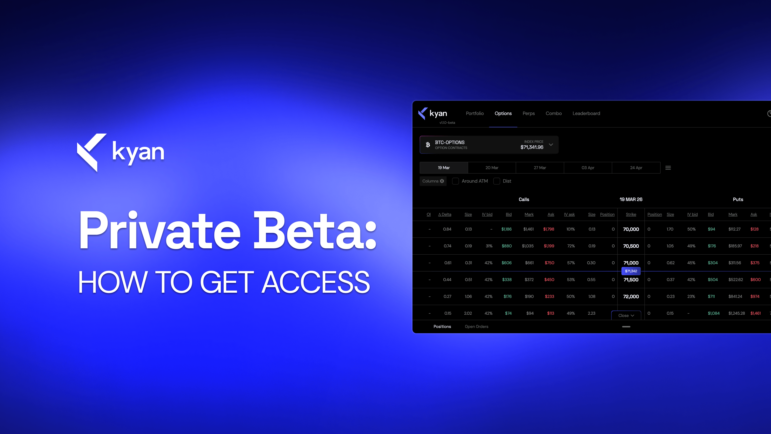 Kyan Private Beta is live on mainnet. Access to the platform is being rolled out gradually and at this point in time, only users who have received a referral code from the team can trade on Kyan.