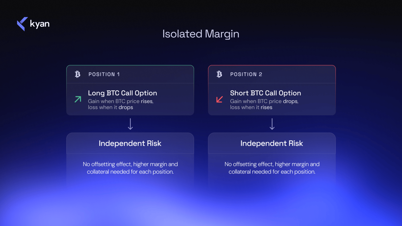 Soon after launch, Kyan will introduce isolated margin as an alternative option. With isolated margin, each position's margin requirements will be calculated independently. While portfolio margin provides much greater capital efficiency, isolated margin can be good for: