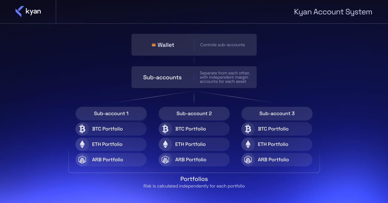 To enhance flexibility and efficiency, Kyan introduces sub-accounts: independent accounts controlled by the same EOA, with their own separate margin accounts for each asset.