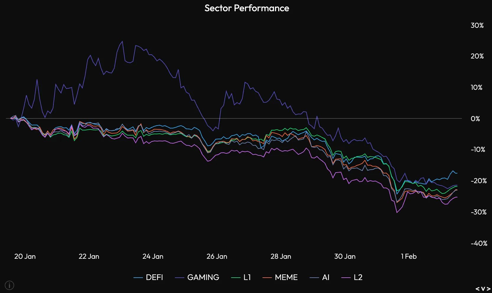Last newsletter we hinted at that it was only dino coins pumping, and that it was concerning… Now, looking back we should have max shorted everything on 1000x leverage. As for sector returns the past 2 weeks, every basket it negative.