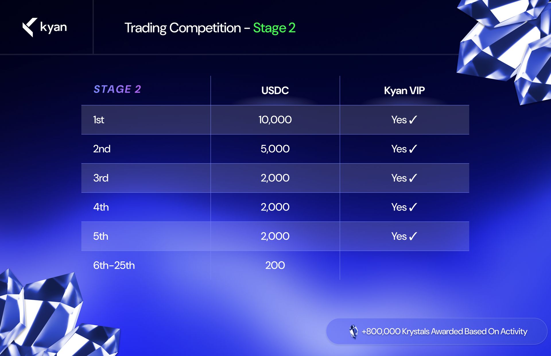 As we wrap up Stage 1 of Kyan test net Trading competition, I want to give a shoutout to all the fellas that stayed online, trading, and providing feedback while the Kyan team was working out a bunch of kinks and bugs!